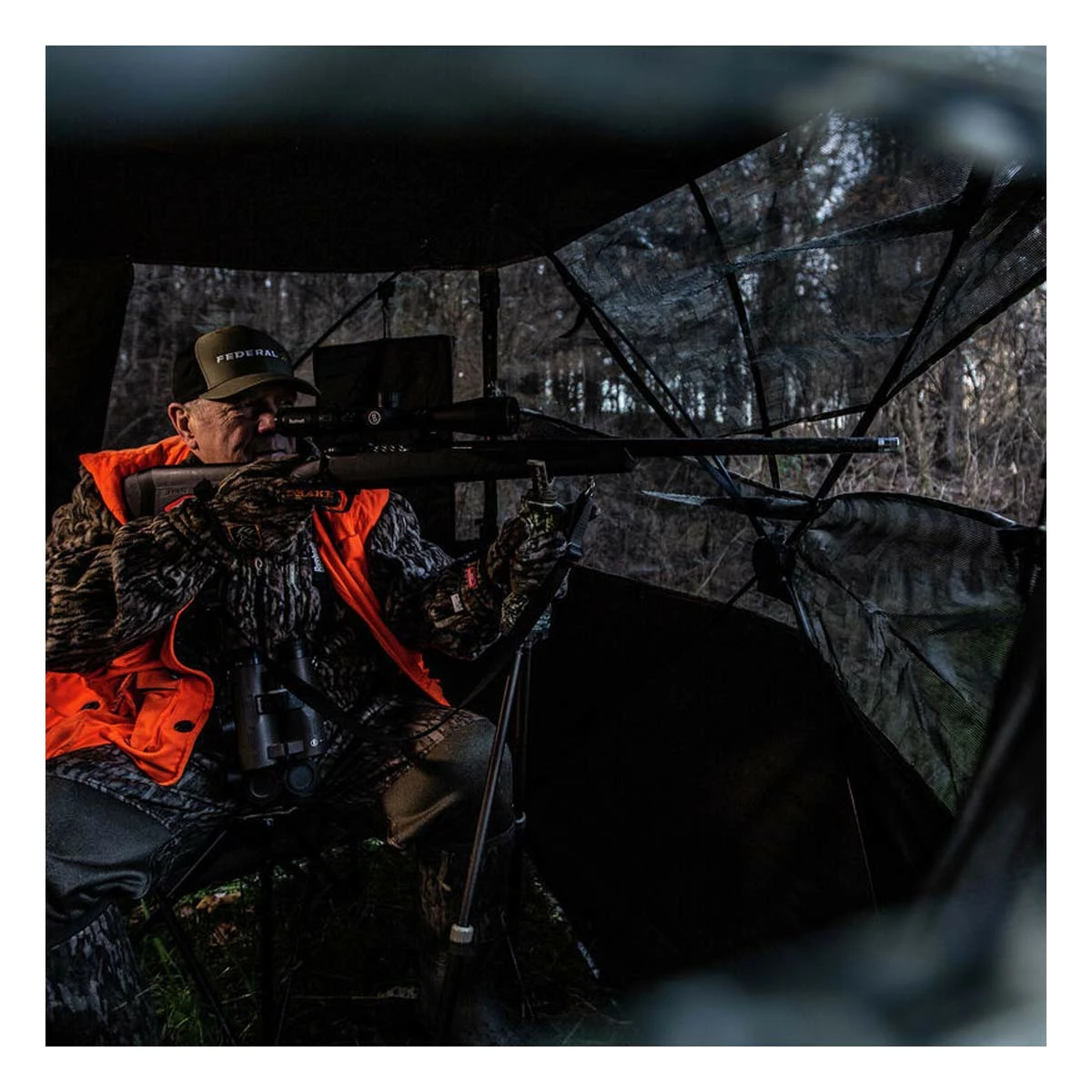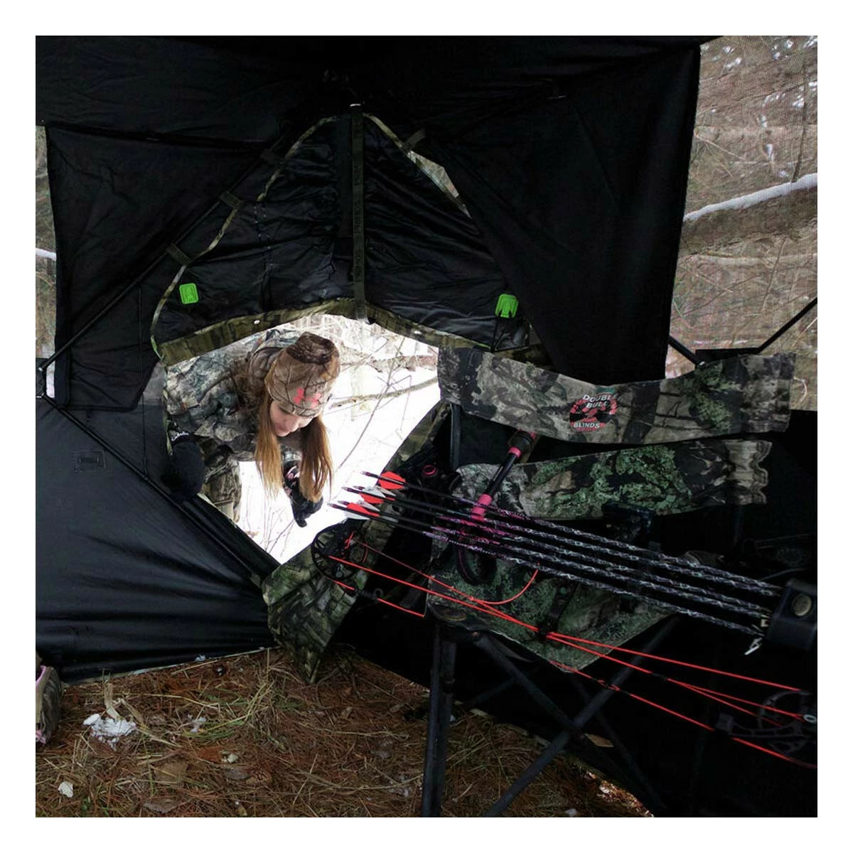 The Original Blind Without a Blind Spot is back and wide open with the Double Bull SurroundView Double Wide. It’s loaded with all the features hunters want most! First, the Double Wide gives you 300 degree of one way see through viewing. Second, the Double Wide door gives you more room to get in and out even with your backpack and thickest winter gear. Just pull the strap for easy and silent entry, then clip the door to shut it. And you’ll love the built in sun visor to maintain maximum vision when the sun is at its lowest at sunrise or sunset. Go wide or go home with the SurroundView Double Wide!
