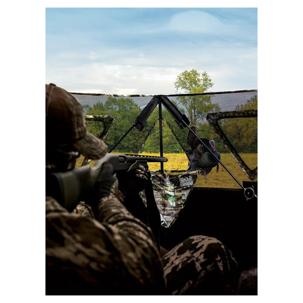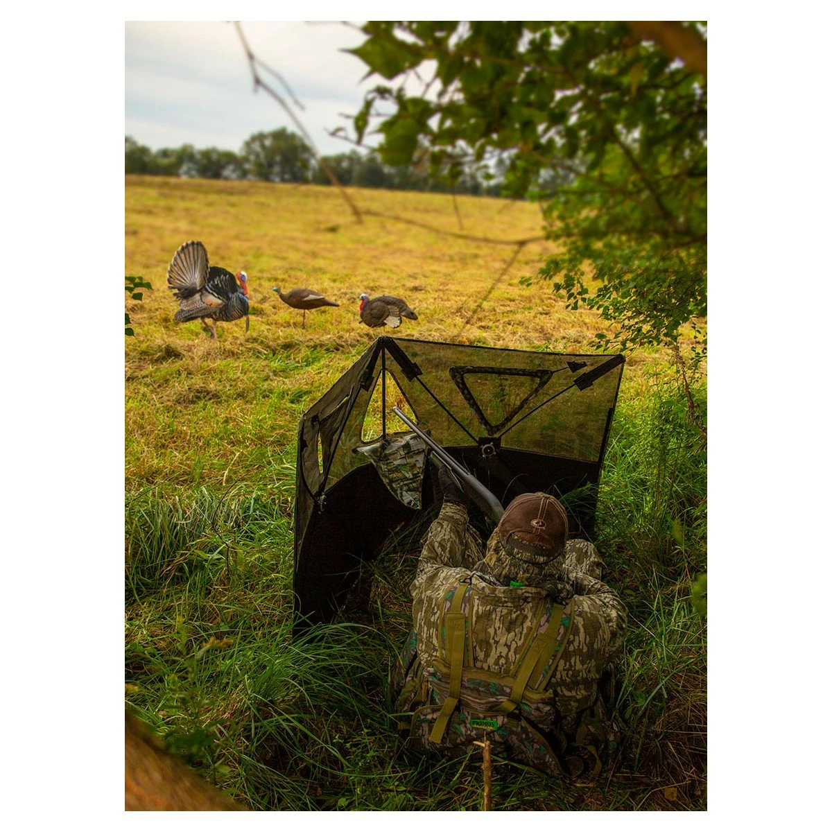 The Primos Double Bull SurroundView Stake-Out Blind is an ultra-portable way to conceal yourself while hunting turkey and other small game. This blind has a unique two-hub design for fast setup and tear-down so you can quickly move to another spot if needed. SurroundView technology creates two one-way view walls to give a full picture of the area while keeping you concealed. For versatile shooting options, this portable blind has three triangular shooting windows that silently open and close. With an included carry bag, the Primos Double Bull SurroundView Stake-Out Blind is lightweight and highly portable, making it ideal for mobile hunters.