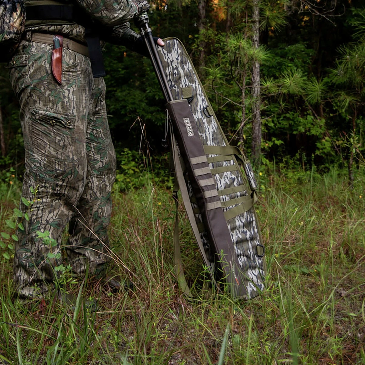 The Rife Case by Primos has been redesigned to fit all new scopes and rifle configurations that have exploded onto the market. Coming with multiple features, this 600D polyester case comes in Mossy Oak Bottomland. Enjoy multiple pockets on the front of the case to carry all of your gear and rounds; as well as a long pocket that runs directly behind them giving the customer the ability to carry cleaning rods or any other longer gear that otherwise gets left behind. Finally, additional webbing on the back makes it easy to carry your Trigger Stick and Trigger Stick Scabbard all in one!Β